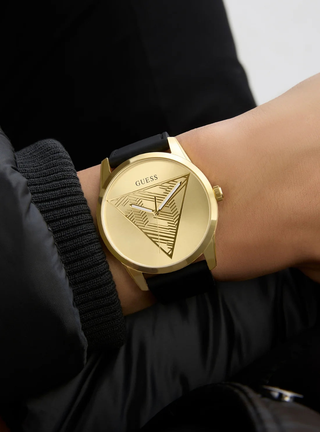 GUESS Mens Black Gold Tone Analog Watch GW0957G2