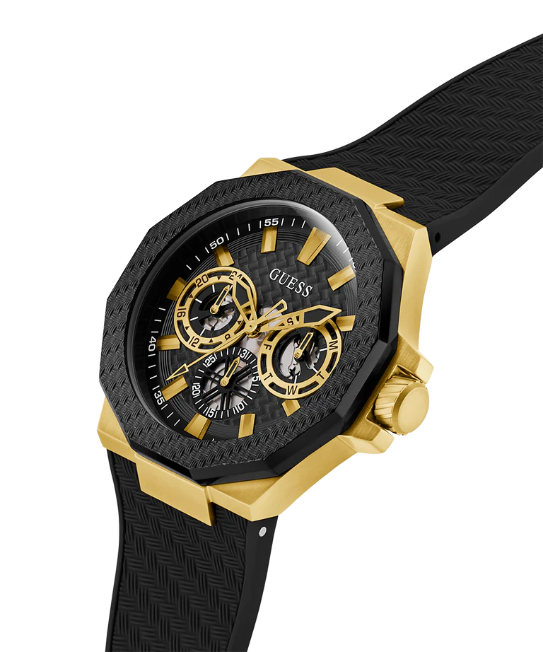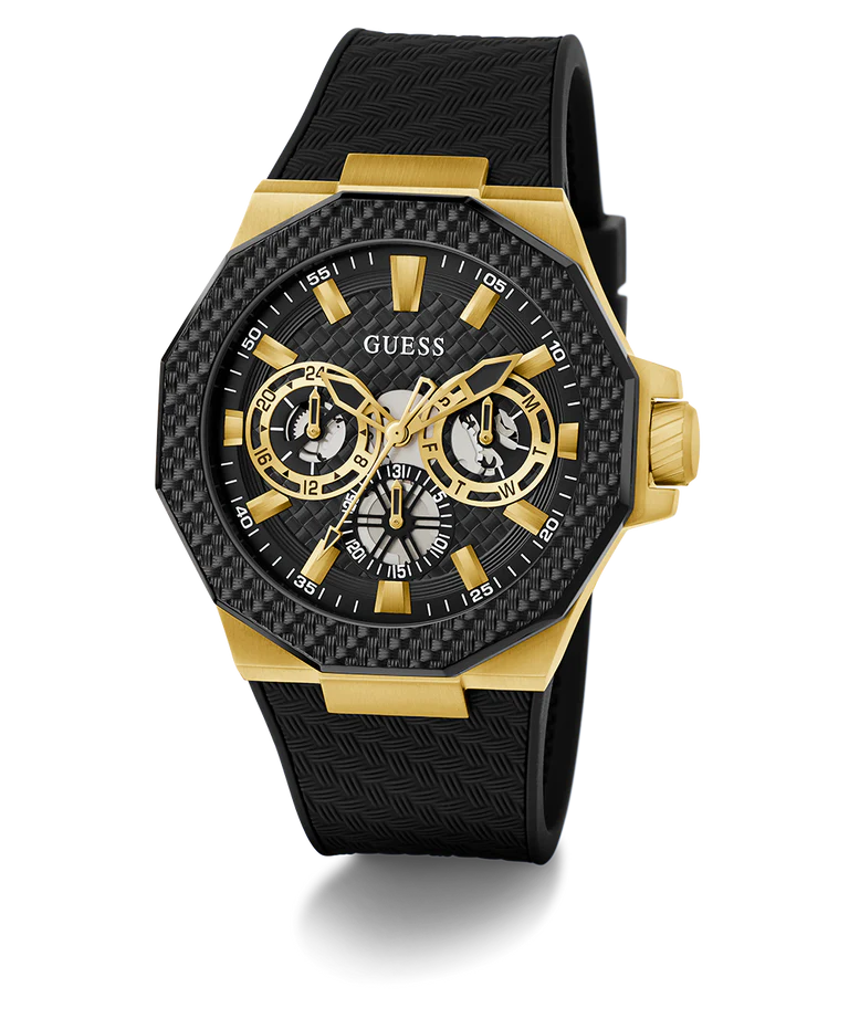 GUESS Mens Black Gold Tone Multi-function Watch - GW0853G2