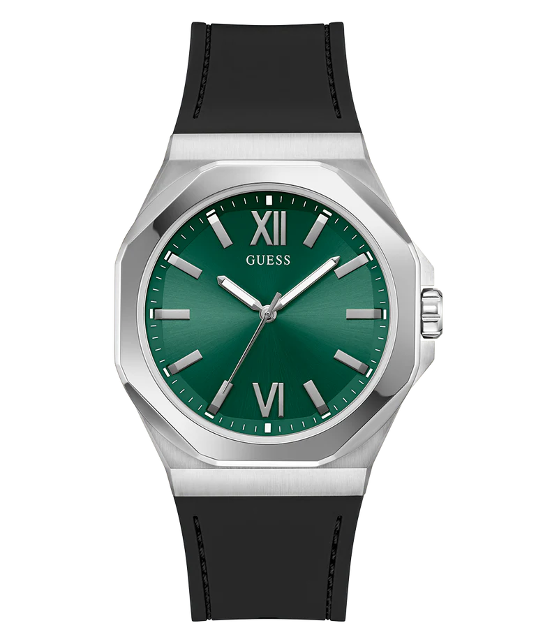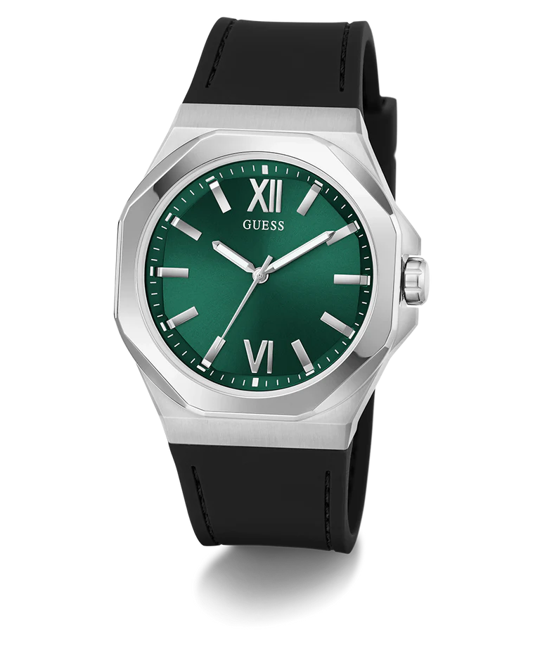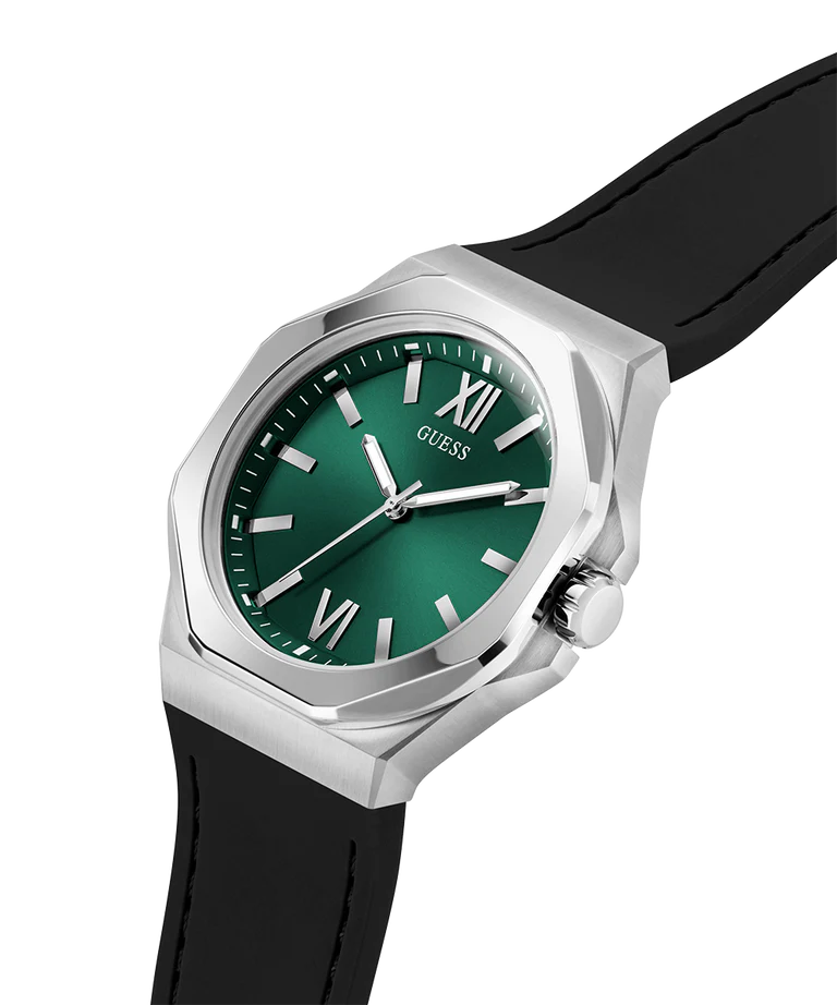 GUESS Mens Black Silver Tone Analog Watch GW0850G1