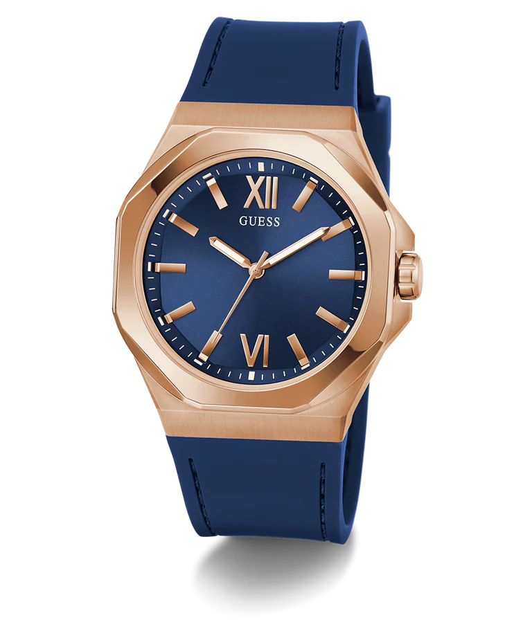 GUESS Mens Blue Rose Gold Tone Analog Watch GW0850G3