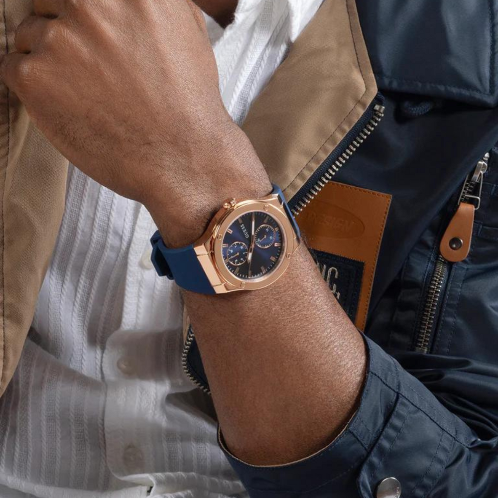 Guess Men's Blue Rose Gold Tone Multi-function Watch GW0491G4
