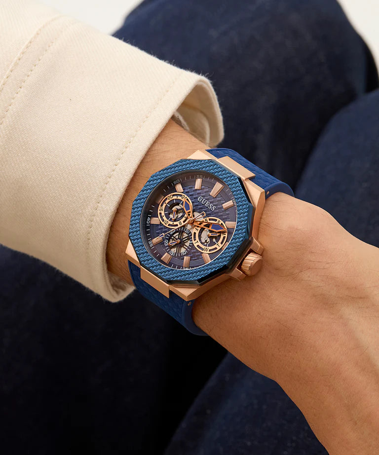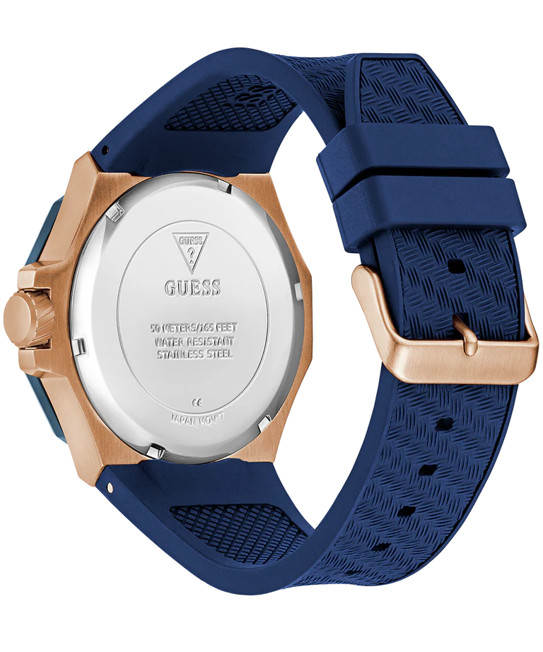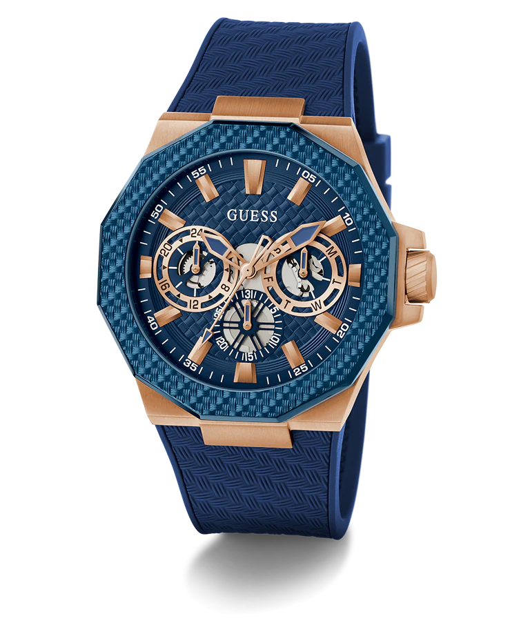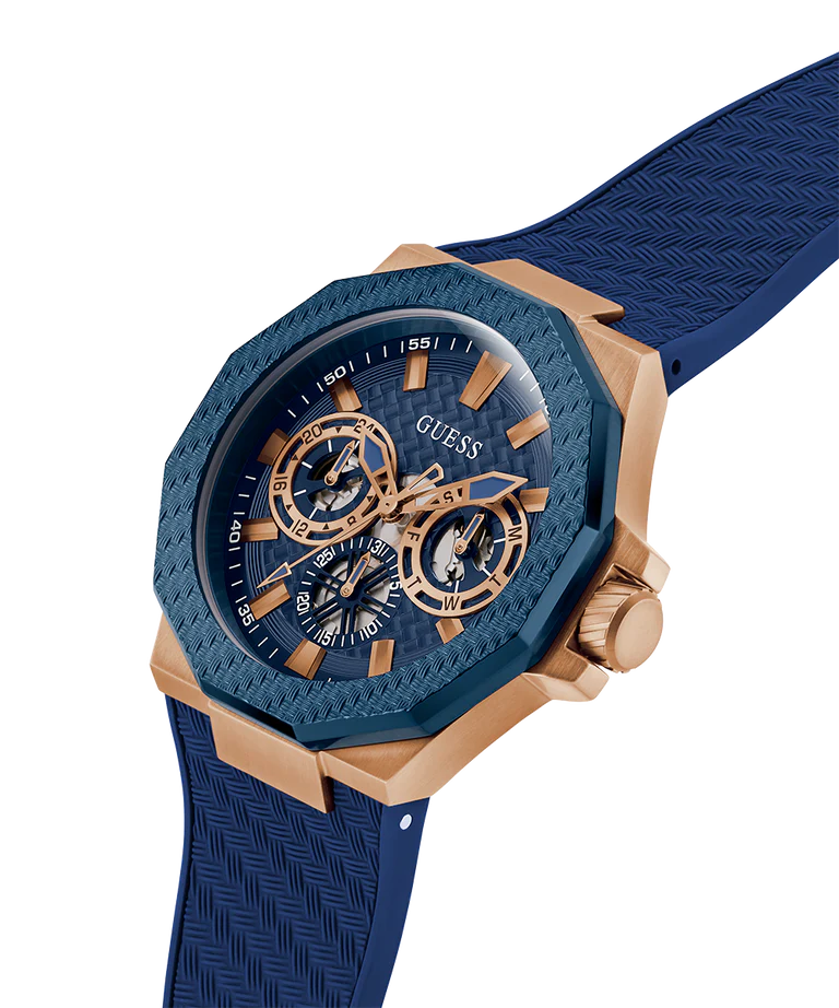 GUESS Mens Blue Rose Gold Tone Multi-function Watch GW0853G3