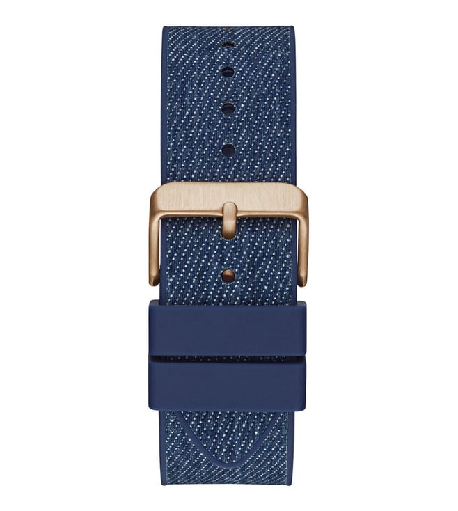 Reflecting the dynamism of modern lifestyles, this men analog watch from Guess will be a great addition to your collection of watches. Secured by a mineral glass, the blue tonneau dial. It has a crown for time adjustment. The silicon strap comes in a blue hue that further elevates the look of the timekeeper. Moreover, it is equipped with a buckle clasp to ensure a secure fit on the wrist.