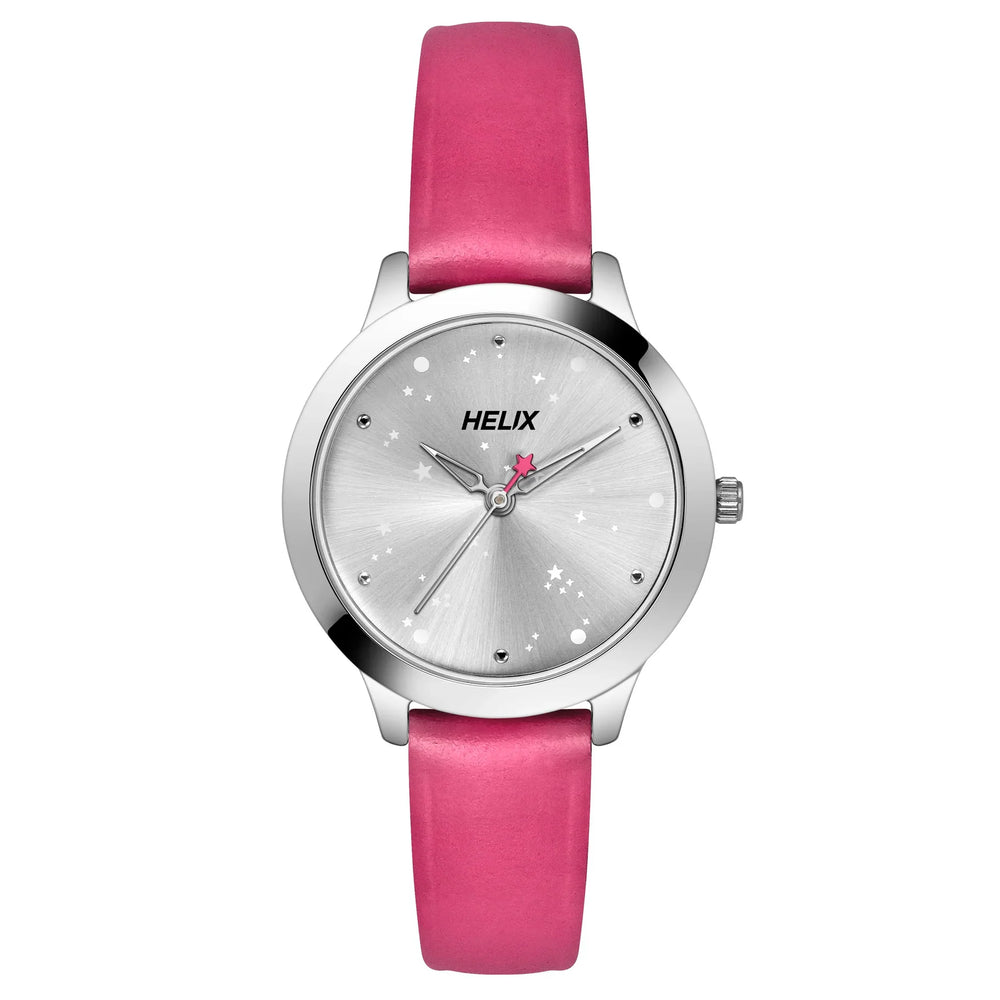 Helix By Timex Silver Round Analog Leather Watch Women -TW022HL29