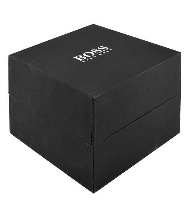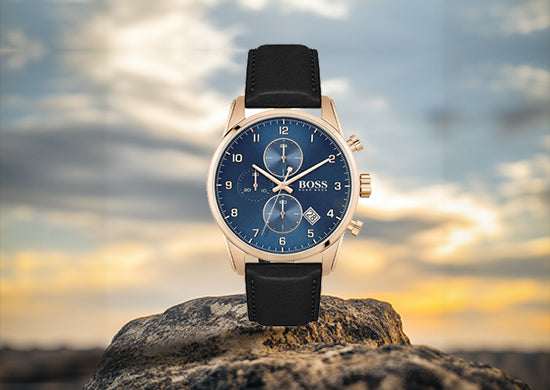 Hugo Boss 1513783 Skymaster Chronograph Watch for Men Step out in style with this Boss Skymaster collection watch which comes with quartz movement with mineral crystal glass. The rounded dial with 44 mm stainless steel case is attached to genuine leather strap. It comes along with two years warranty period.
