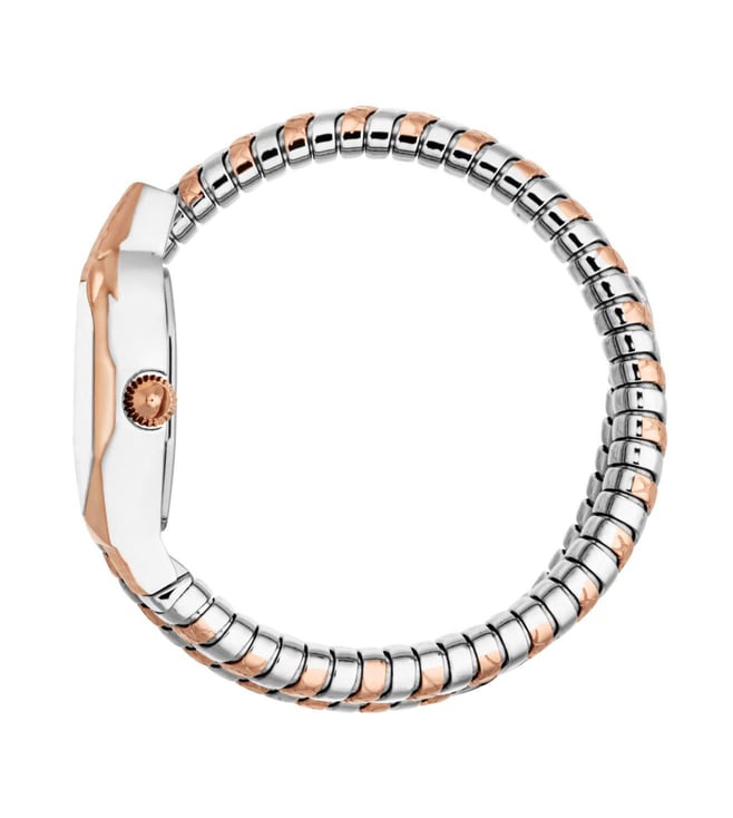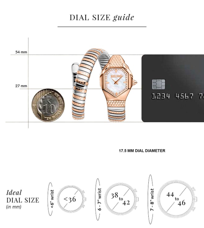 Elevate your style with the Just Cavalli Aria Analog Womens watch. With a sleek 17.5mm case size, this timepiece exudes elegance and sophistication. The striking design features a beautiful blend of gold-tone stainless steel and a unique geometric pattern on the dial, making it a perfect accessory for any outfit. Stay on time and on trend with this chic and timeless watch that will surely make a statement wherever you go. Add a touch of luxury to your look with the Just Cavalli Aria Analog Women 17.5mm JC1L369M0075.