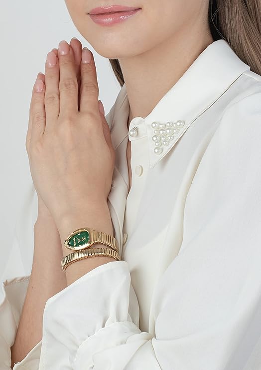 Absolutely eye-catching, this analog watch from Just Cavalli acts as a statement piece, if you are looking for a refined look. Known for its distinctive bracelet pattern, this timepiece stands out. With a stunning design and charming looks, this is an exquisite wristwatch made for a la mode ladies. Just Cavalli watch line has been conceived as a collection of fashion accessories designed to appeal to the young and young at heart.