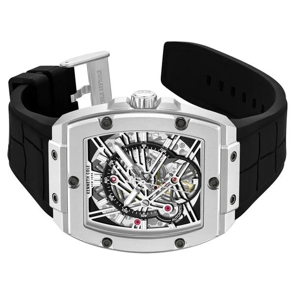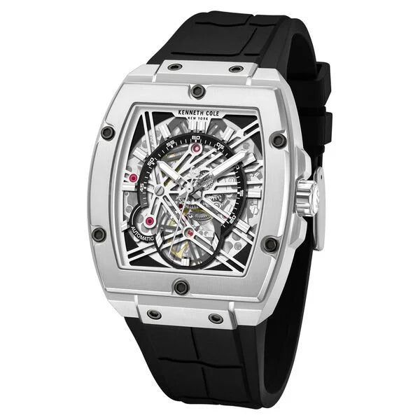 Kenneth Cole Automatic Silver Dial Black Colour Silicone Strap Watch For Men kcwgz0067803mn