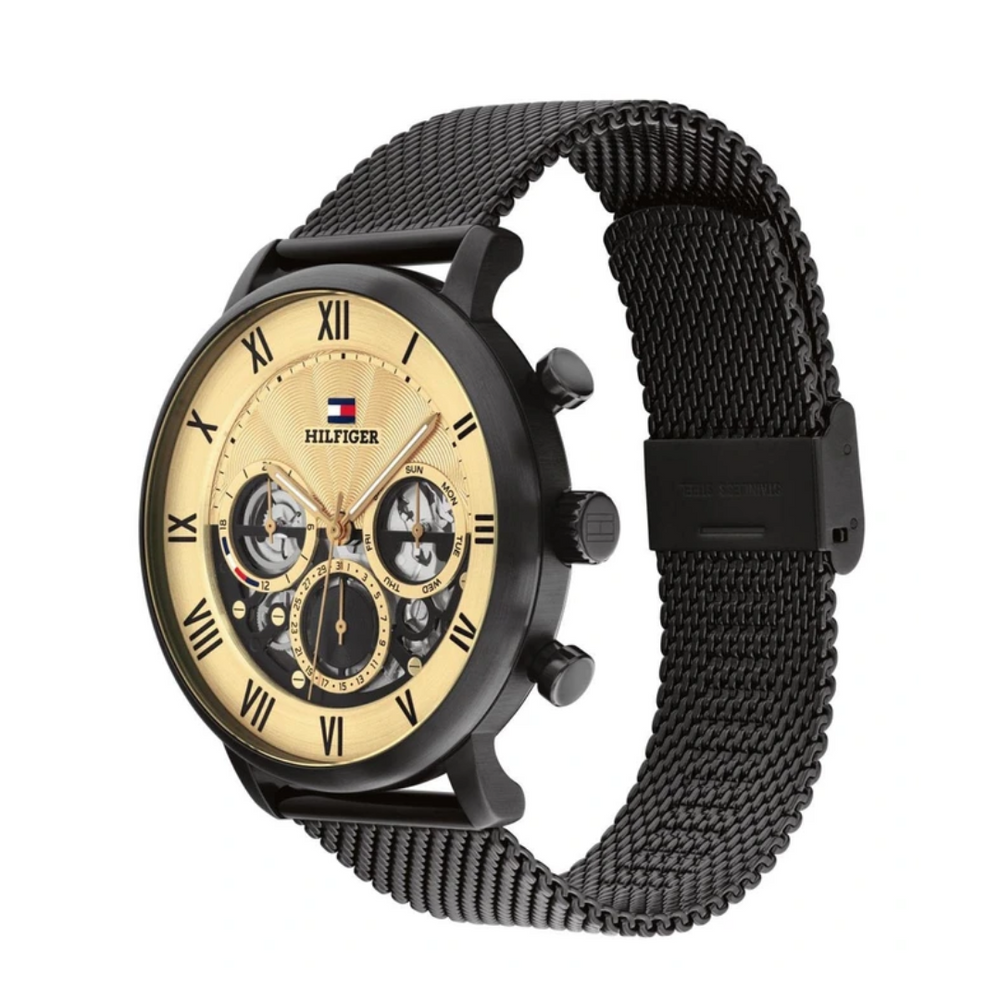 Elevate your personal style and grace with the iconic Tommy Hilfiger watch on your wrist. Catering to the refined tastes of fashion-forward individuals, this watch exhibits a harmonious blend of tradition and innovation. Its sleek dial, trendy hands, and sturdy construction create a modern yet timeless look.