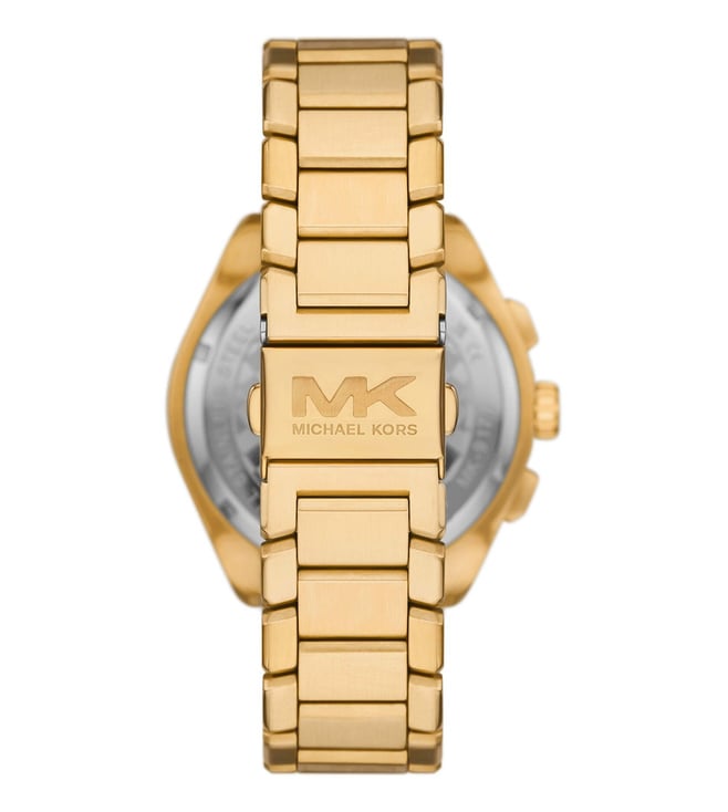 Michael Kors' 44mm Accelerator 2.0 watch features a black and green textured dial, chronograph movement and gold-tone stainless steel bracelet. Amaze everyone around you by wearing this men's analog watch from the collection by Michael Kors. The black round dial is protected by a mineral glass. It features a crown for time adjustment