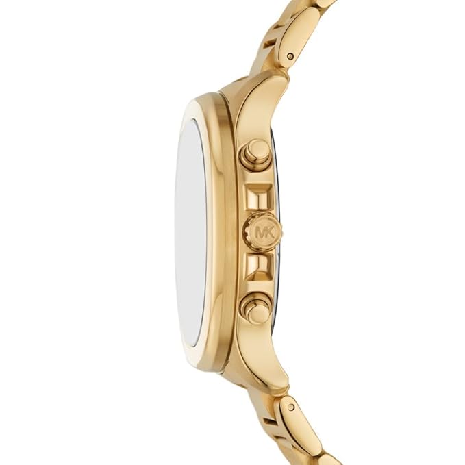 Michael Kors' 42mm Sage watch features a black brushed, polished and textured dial, chronograph movement and gold-tone stainless steel bracelet.