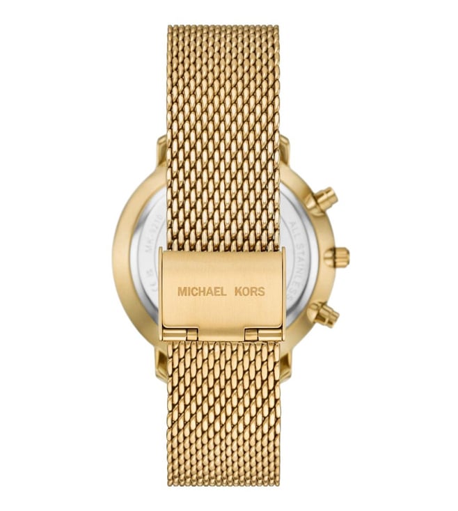 Clean lines and timeless craftsmanship come together to create the Blake watch. This 42mm version features a polished gold tone stainless steel case, a matching dial and mesh bracelet. Powered by a quartz movement and protected by mineral glass, this timepiece embodies a modern, sleek aesthetic with a contemporary twist.