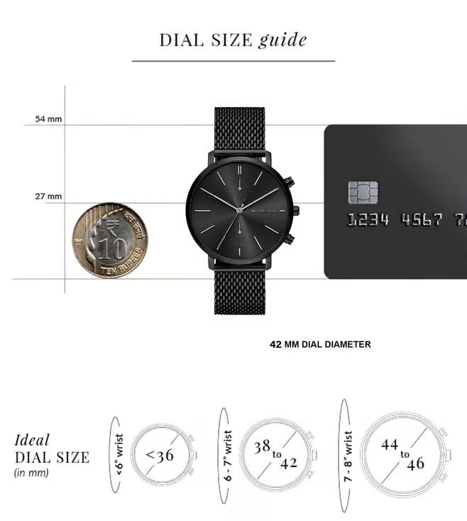 | Model | Case Size | Dial Thickness | Strap Width | Strap Length | Fits Wrist Size |