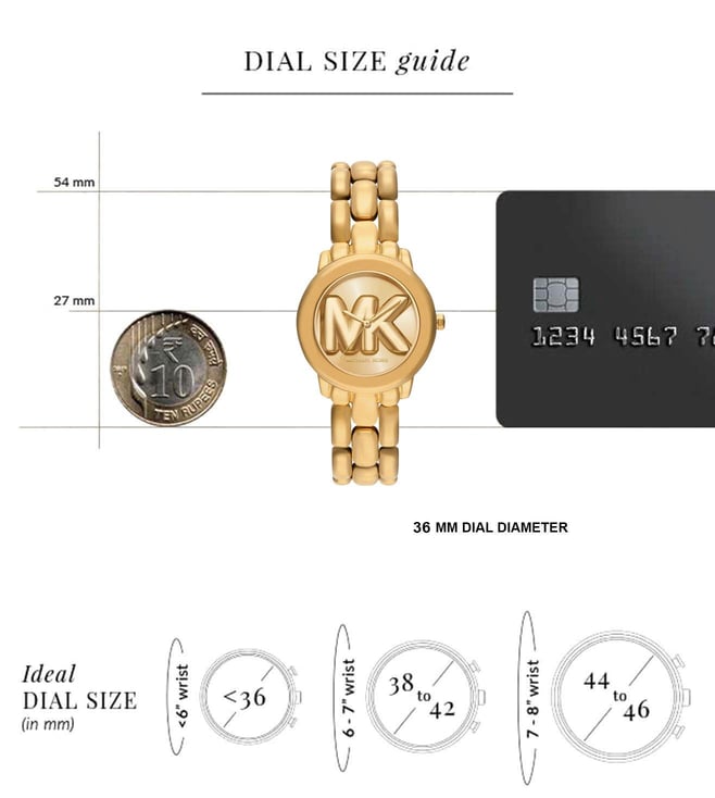 Defined by sculptural half-moon chain links, the Phoebe watch offers a sleek yet playful approach to timekeeping. A newly designed rounded MK logo is seamlessly integrated into the 36mm dial, nodding to the Michael Kors Collection. Its gold-tone stainless steel finish enhances the statement-making design, delivering a perfect blend of modern glamour and iconic brand heritage.