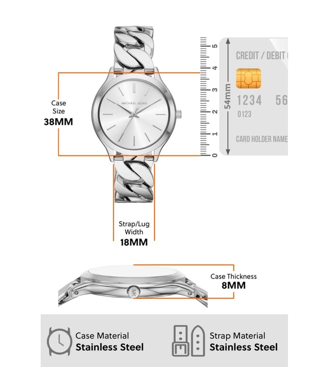 Redefine elegance on your wrist by donning this wristwatch from Michael Kors. The watch dial is protected with mineral glass and is water resistant up to 50 m. The timepiece works on a quartz movement.