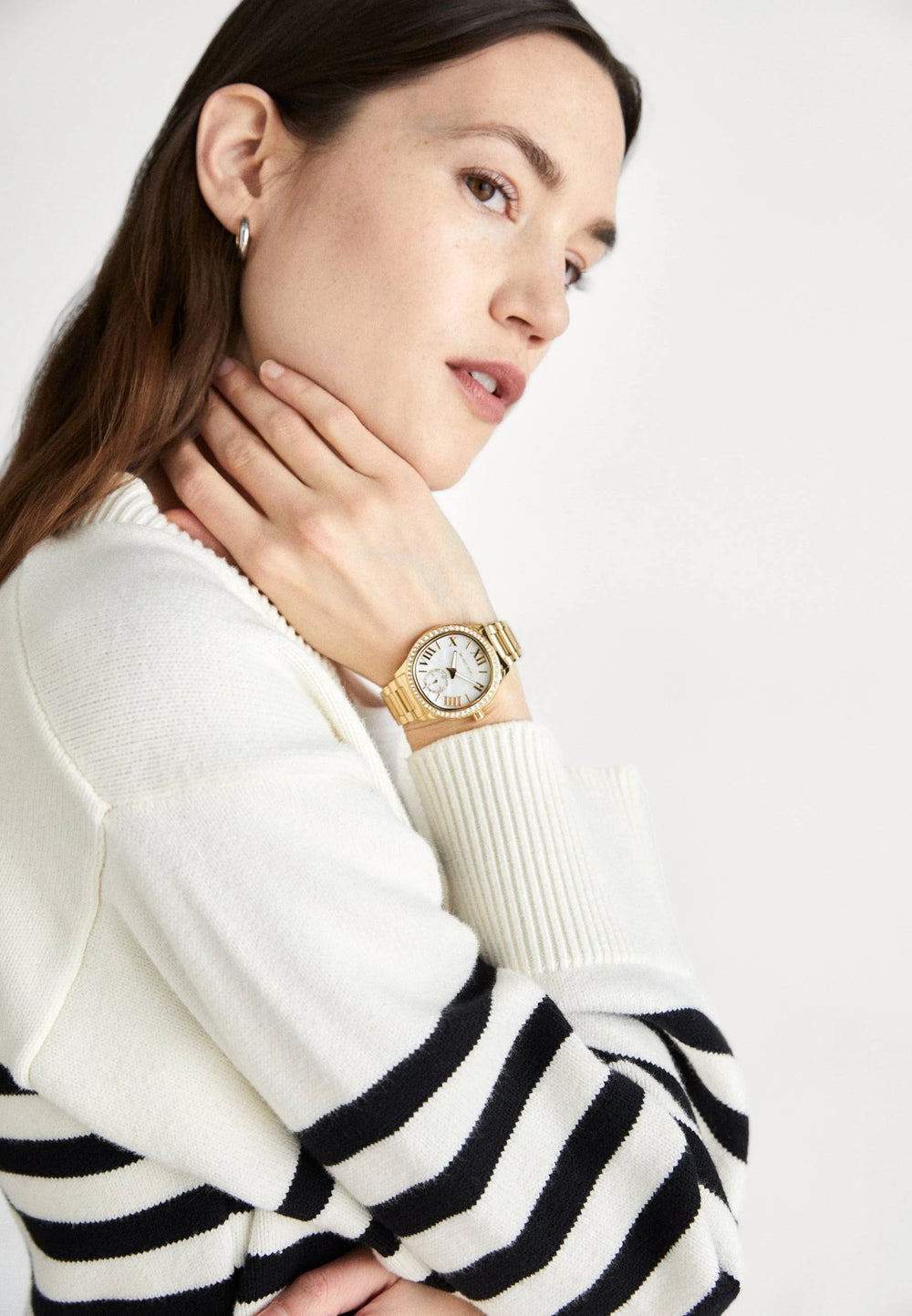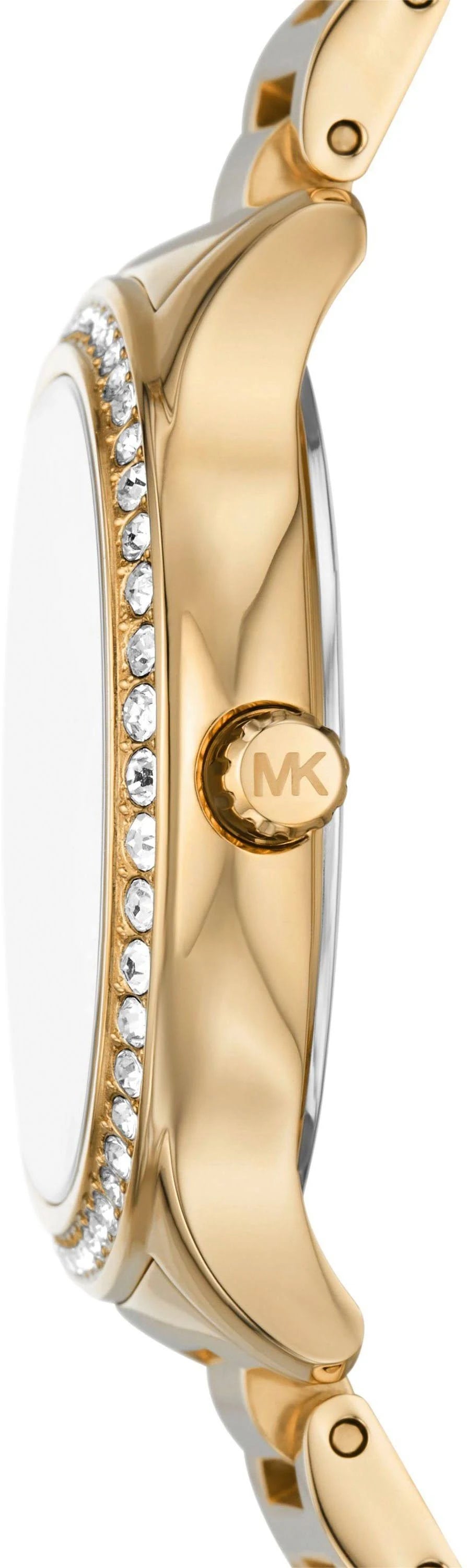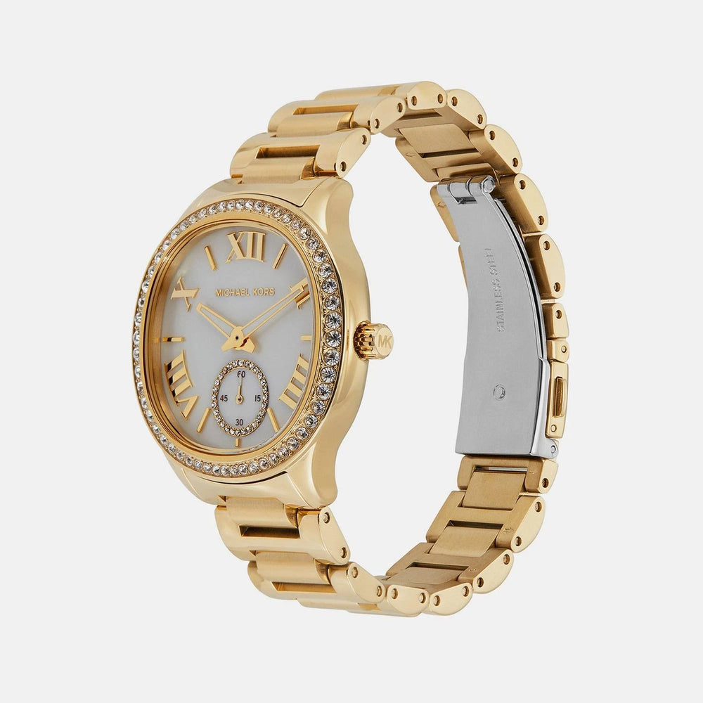 Experience perfection, one second at a time with this wristwatch from Michael Kors. It features a Mother-of-pearl dial. The watch dial is protected with mineral glass and is water resistant up to 50 m.