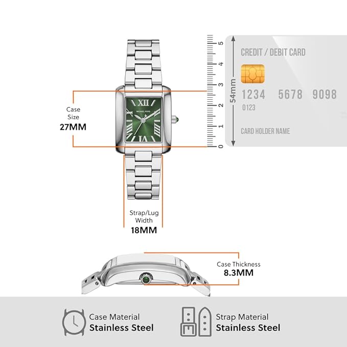 Michael Kors' Special Edition 27mm Emery watch made in collaboration with Anushka Sharma, features a green brushed dial, three-hand movement and stainless steel bracelet. Flip the watch over to reveal Anushka's signature on the caseback.