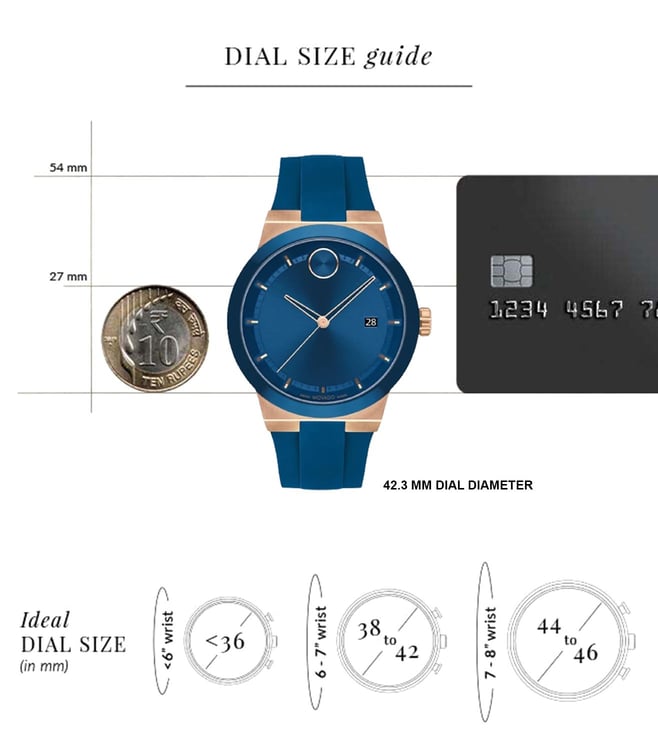 Add a stylish dimension to your look by wearing this men's analog watch from the collection by Movado. The blue round dial is protected by a mineral glass. It features and a crown for time adjustment. The stainless steel strap comes in a blue hue that further elevates the look of the timekeeper. Besides, it is completed with a buckle clasp to ensure a secure fit on the wrist.