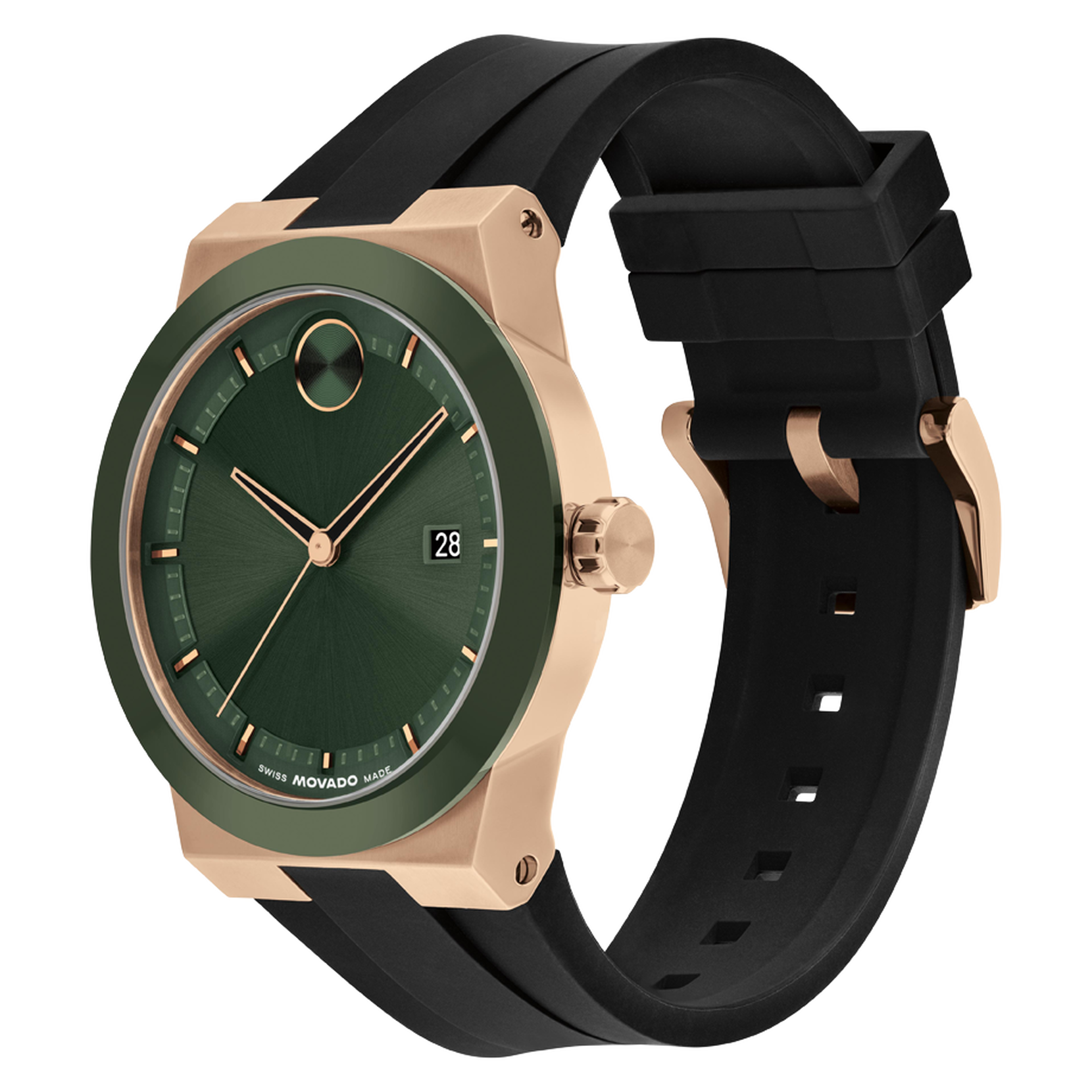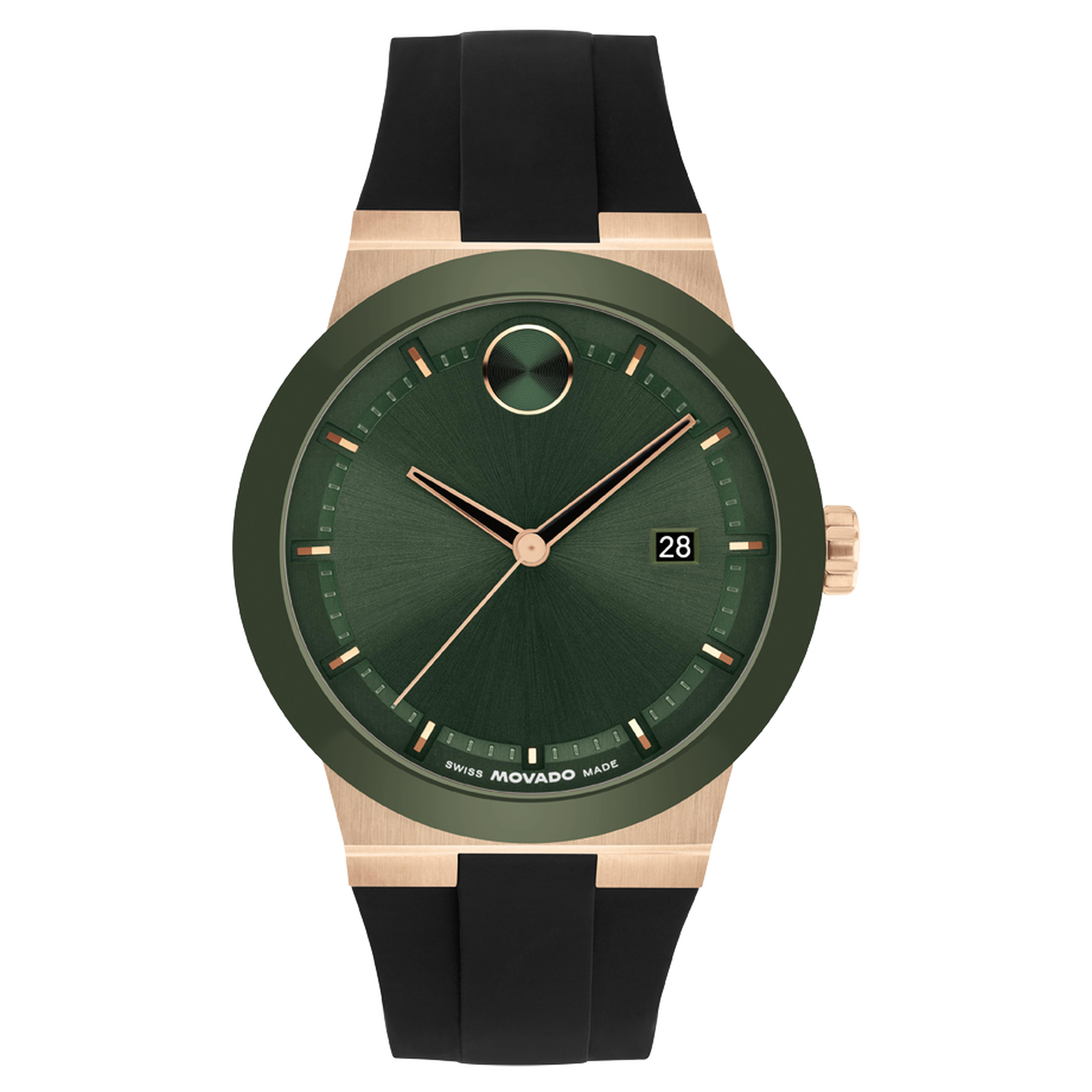 Movado Bold Men Quartz Green Dial Analog Silicone Watch 3601296