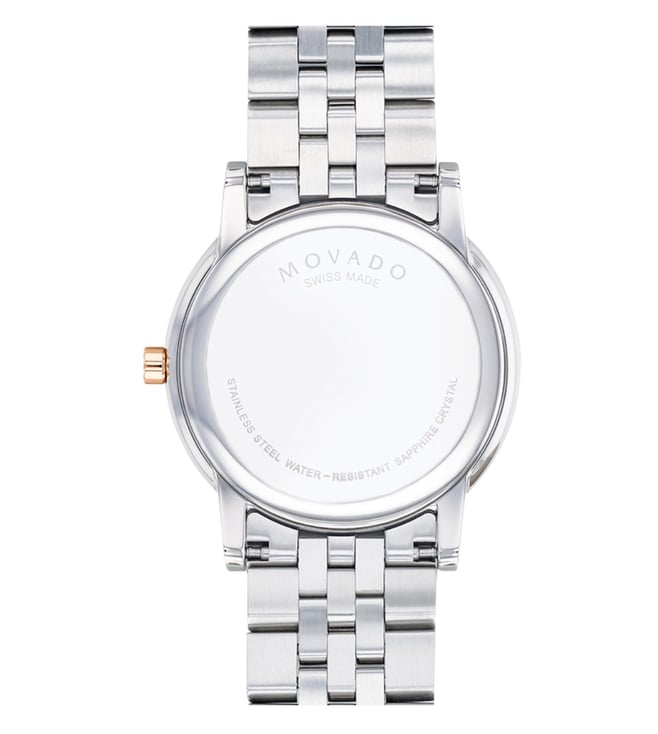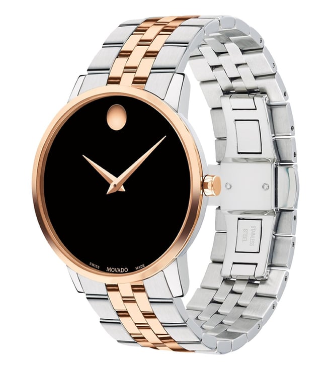 A must-have timepiece for all the watch aficionados, this men's analog watch from the collection by Movado will be a perfect pick. The black round dial is protected by a scratch resistant glass. It features a crown for time adjustment. The stainless steel strap comes in a two tone hue that further elevates the look of the timekeeper. Besides, it is completed with a fold-over clasp with double push button safety clasp to ensure a secure fit on the wrist.