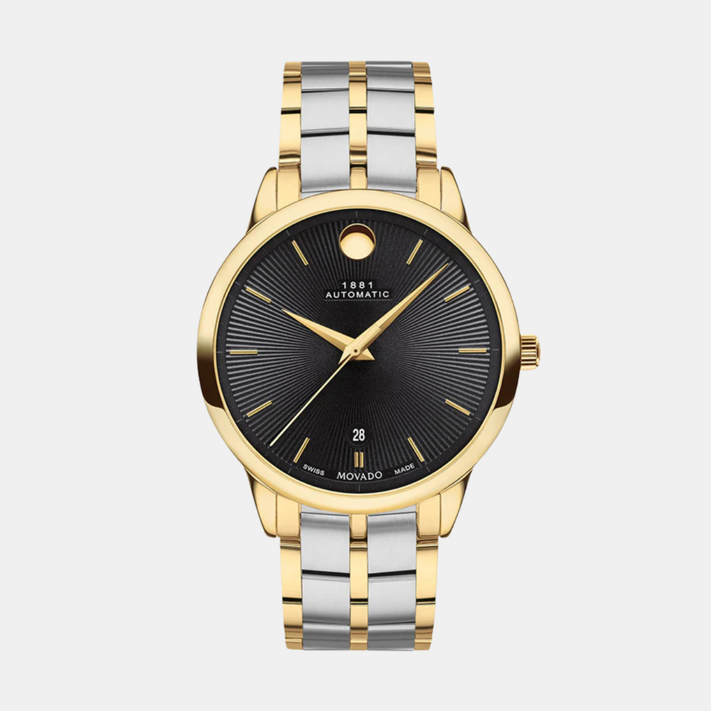 Movado 1881 Automatic Mens Stainless Steel Yellow Gold PVD Case Swiss Movement Black Dial Silver/Yellow Gold PVD Link Steel Bracelet Watch -607463