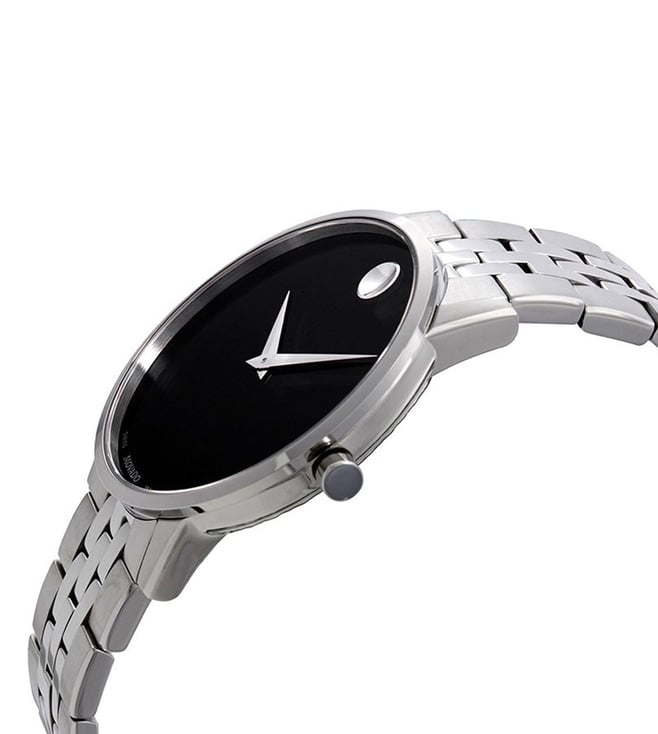 Vaunting a masculine design, this men's analog watch from the Museum Classic collection by Movado is a must-have timepiece. The black round dial features plain two hands and a crown for time adjustment. The stainless steel strap flaunts a silver hue that accentuates its look.