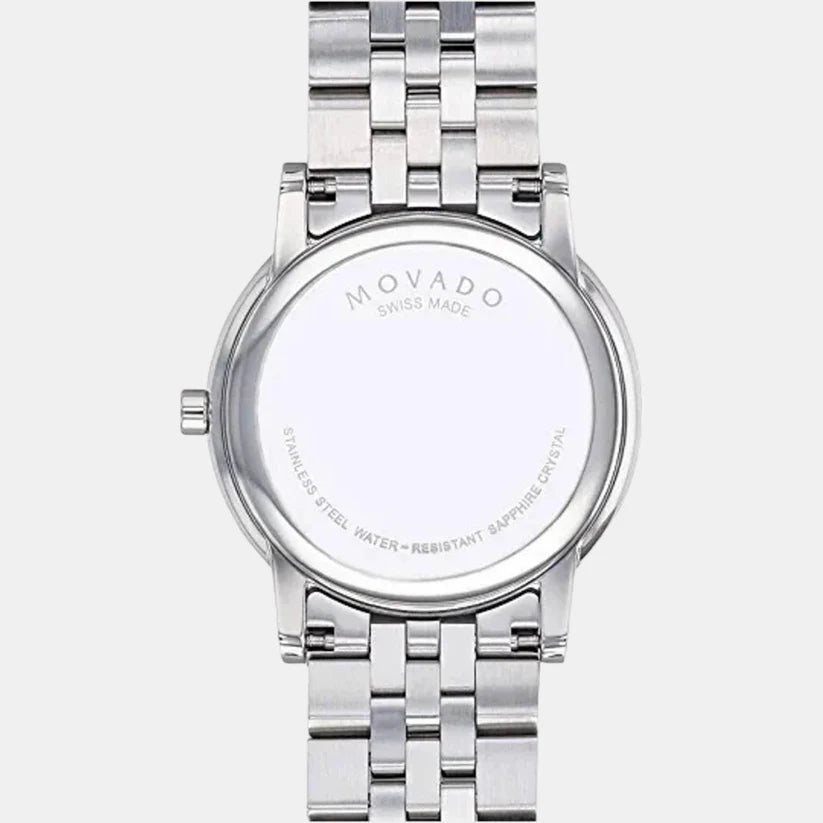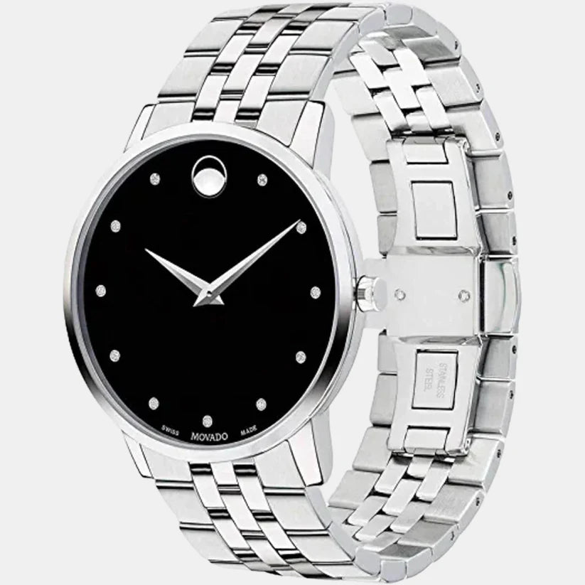Add the perfect finishing touch to your look with this men's analog watch from the Museum Classic collection by Movado. The stainless steel strap showcases a silver hue that uplifts its look. The black round dial showcases plain two hands and a crown for time adjustment.