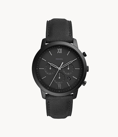 As royal as it gets, these incorporating elements from mid-century architecture never gets out of fashion. This all-black Neutra chronograph watch features a well-balanced construction with a chronograph dial featuring white stick markings at all hours and sculpted case. A black leather strap fastens the dial around your wrist. It is designed to raise your 'class' standard in any formal meeting.