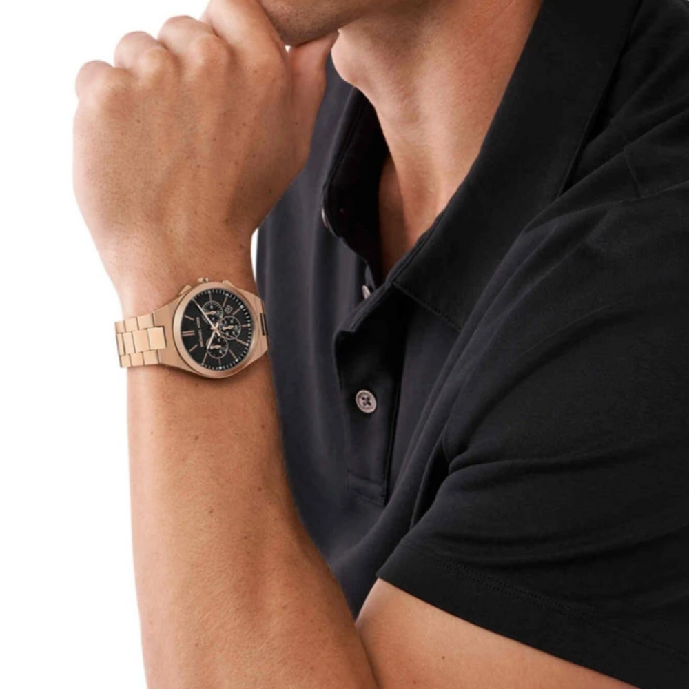 Our Lennox watch is a sophisticated timepiece that works for both casual and formal occasions. Crafted from water resistant stainless steel to stand the test of time, it features a minimalist black dial with chronograph subdials for added functionality. We think it makes a great everyday timepiece.