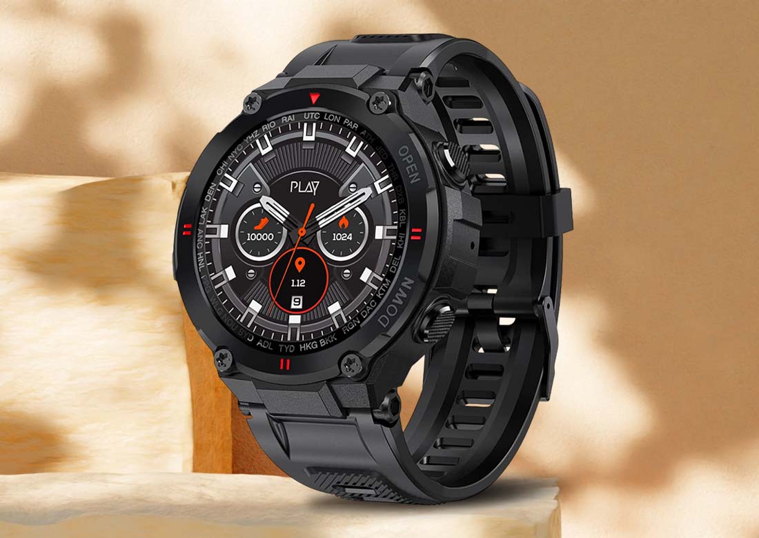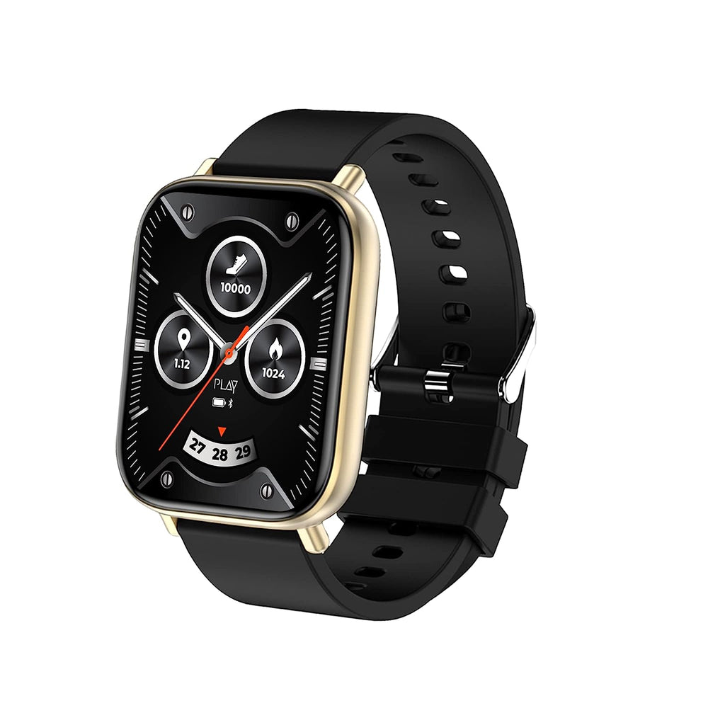 World Of PLAY PLAYFIT DIAL; Bluetooth Calling, 45mm IPS Resolution, in-Built EBEL Speakers, Upto 5 Days of Playtime, Heart Rate & SpO2 Monitoring, IP67 Water Protection (Black+Gold), One Size