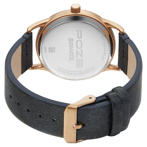 Sonata SP70014WL01W Poze Quartz Analog Watch for Men features a classic white dial complemented by a stylish leather strap, combining timeless elegance with everyday practicality. Powered by reliable quartz movement for accurate timekeeping.