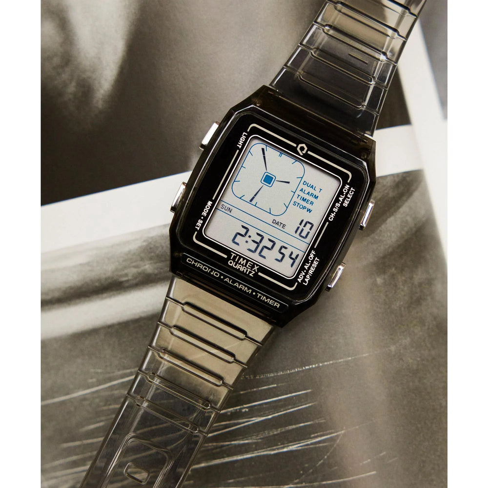 Call us nostalgic, but we love digging into our archives. This time we found a digital watch from the late ‘80s we just had to bring back. Our Q Timex® Digital LCA—liquid crystal analog—recreates the original right down to the unique digital/analog display. We’ve modernized it with a translucent resin case and coordinating resin strap available in grey, but kept the pre-INDIGLO® single-bulb backlight for a truly retro vibe. The result is a watch that’s just as useful, wearable, and appealing as it was more than four decades ago.