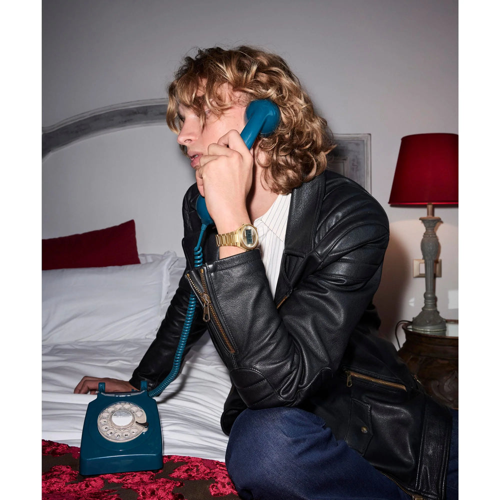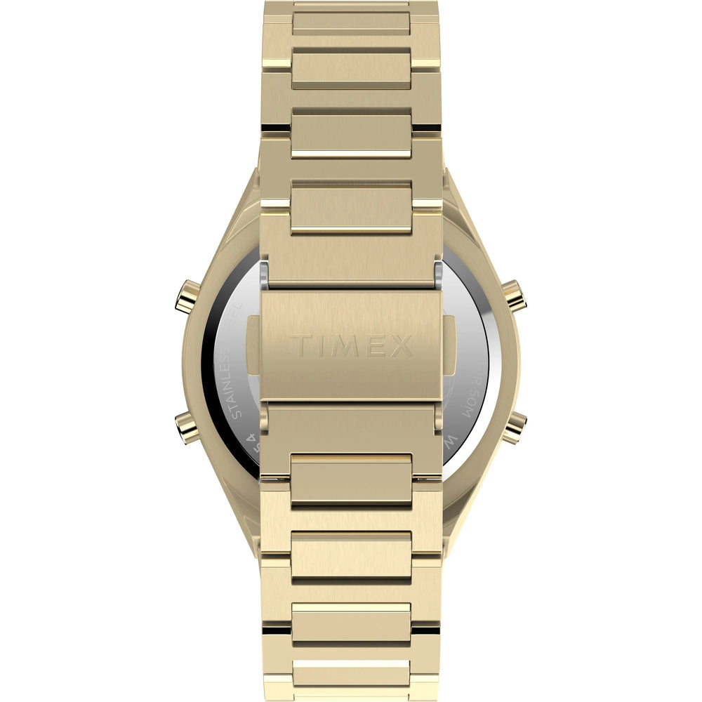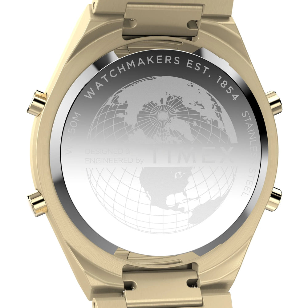 Channeling the bold designs and decadent glamour of West Hollywood, the Timex Q80 reimagines our Q Timex® with a sleek round case design and rectangular digital display encircled with sunburst brushing. Timelessly cool, it features the same reliable features as our iconic T80 as well as our INDIGLO® backlight for visibility on late nights. Crafted with a gold-tone or silver-tone 39mm brushed stainless-steel case with polished edges, it comes with a coordinating brushed stainless-steel bracelet that combines vintage charm with modern functionality.