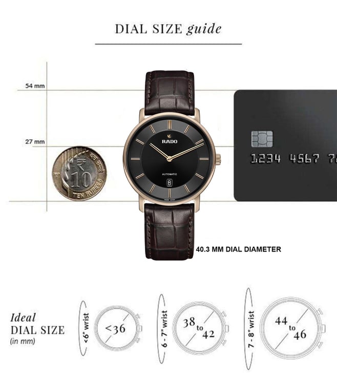 | Model | Case Size | Dial Thickness | Strap Width | Strap Length | Fits Wrist Size |