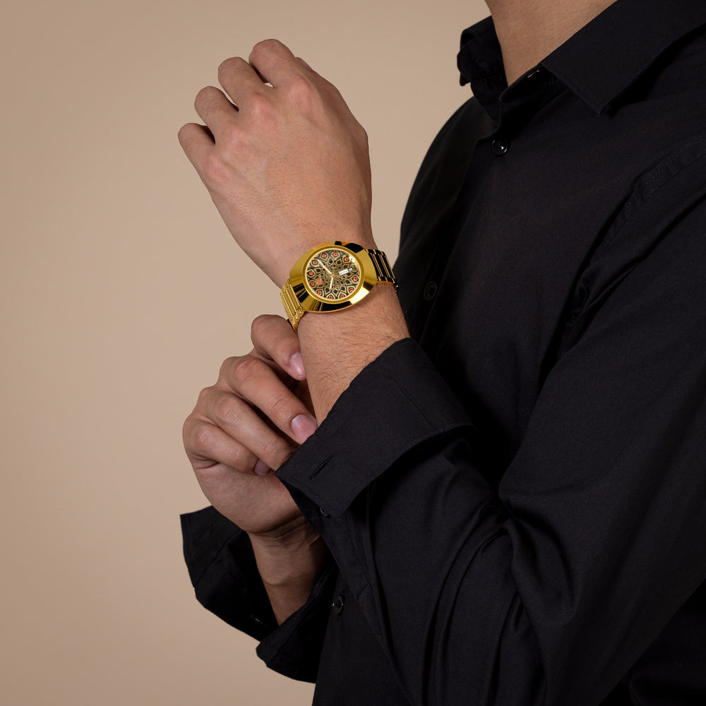 Discover timeless elegance with this RADO watch. Featuring a 38 mm case and sapphire glass, it operates on an automatic movement. It is water resistant up to 100 m. The dial features eleven cubic zirconia, on a coloured harmonic pattern on a background. The RADO R764 automatic movement offers 80 hours of power reserve, with an antimagnetic Nivachron balance spring.