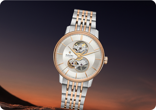 Rado Florence blends timeless Renaissance artistry with Swiss precision to stunning effect. The slim profile and premium seven-link bracelet guarantee comfort, while the metallised, edge-to-edge sapphire crystal glass ensures the watch is durable. Yellow gold- coloured hands with white Super-LumiNova® highlights sweep across the green dial, with four diamonds at 3, 6, 9 and 12 o’clock and a fine, bi-directional brushed surface. The green metallisation and green background on the date display at 6 o’clock both match the colour of the dial. Thanks to the box-shaped sapphire crystal exhibition case back, the designers were able to retain the line’s iconic slim profile. The watch is powered by Rado calibre R763, an automatic 3-hand, 25-jewel movement with an 80-hour power reserve and an anti-magnetic NivachronTM hairspring for enhanced reliability and precision. This model’s refined aesthetic juxtaposes the sandblasted stainless steel case with the polished bezel and case back, echoed by the bracelet’s high-contrast sandblasted and polished links.