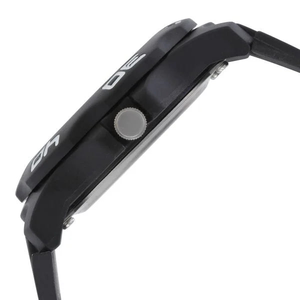 his analog watch for men has plain three hands, sFastrack Tick time indicators and Arabic numeral hour markings at the quarter intervals on a black dial. Made of plastic, the case features a crown and white Arabic numeral minute markings. Its black strap is also made of plastic, and it is secured by a buckle closure. The timepiece is equipped with 3 ATM water resistant feature
