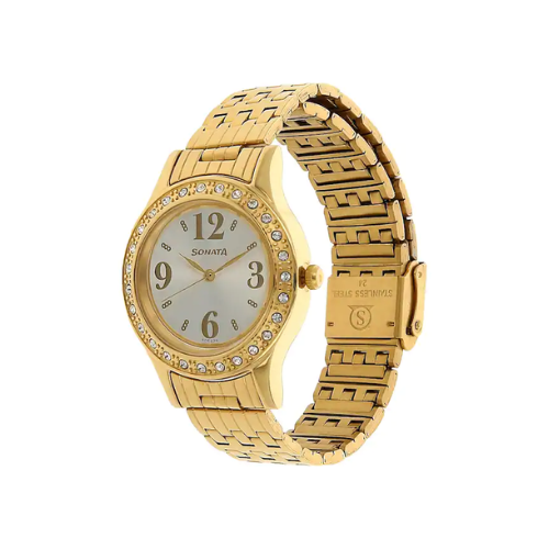 Silver Dial Golden Stainless Steel Strap Watch NK8123YM01