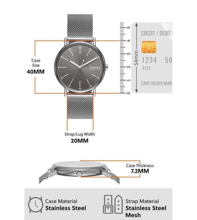 A perfect fusion of style and functionality, this watch set from Skagen is sure to make a statement. Secured by a mineral glass, the round-shaped sunray dial is housed in a 40 mm case. The set includes a watch and an interchangeable watch strap. Moreover, it is water resistant up to 50 m.