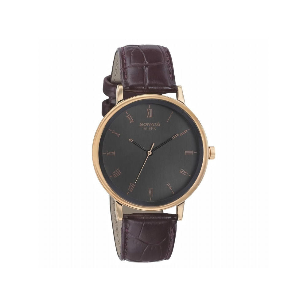 Sleek Anthracite Dial Leather Strap Watch NN7131WL01