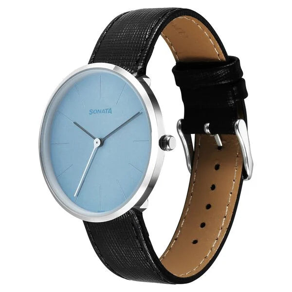 Sonata Ascent Quartz Analog Blue Dial Leather Strap Watch For Men 77152sl03