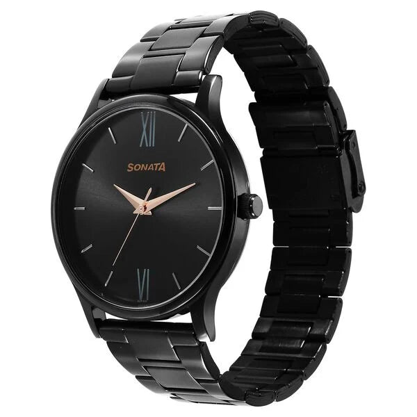 Sonata Aspire Quartz Analog Black Dial Stainless Steel Strap Watch for Men 77105nm03w