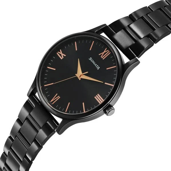 Sonata Aspire Quartz Analog Black Dial Watch for Men - 77105NM09W