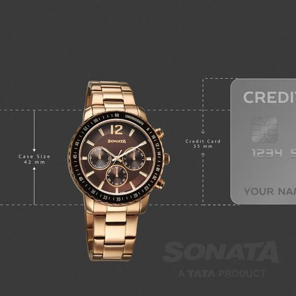 Elevate your style with the Sonata 77188KM02 Chronograph Analog Watch for Men. This sleek timepiece combines functionality with sophistication, featuring a chronograph display and a durable stainless steel construction. Whether you're dressing up for a special occasion or looking to add a touch of elegance to your everyday ensemble, this watch is the perfect accessory. Stay punctual and on-trend with the Sonata 77188KM02.