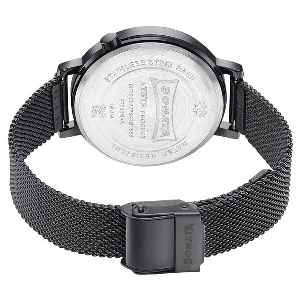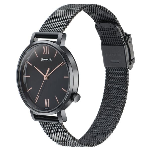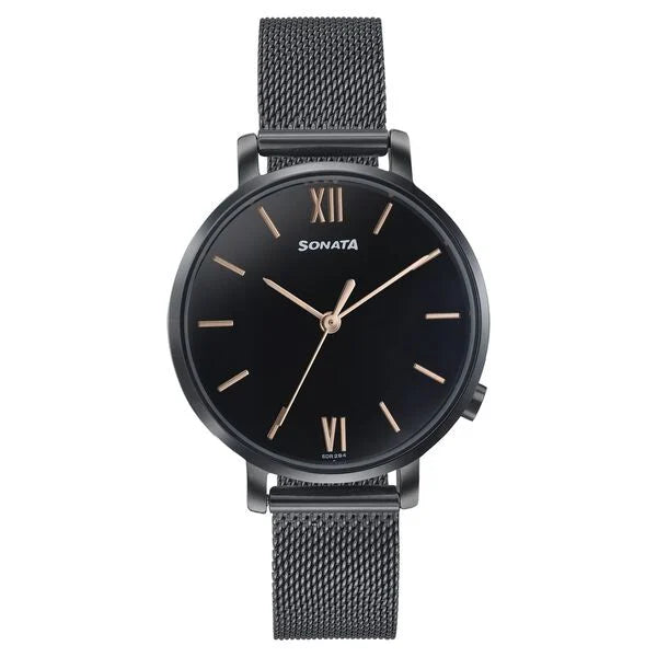 Sonata Elegent Essentials Quartz Analog Black Dial Stainless Steel Strap Watch For Women 87045nm01w