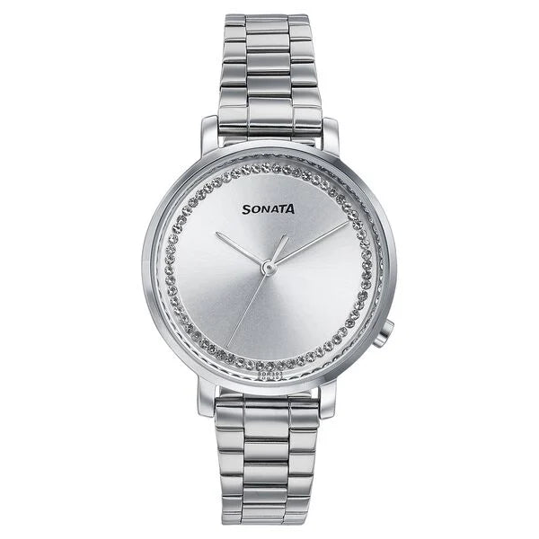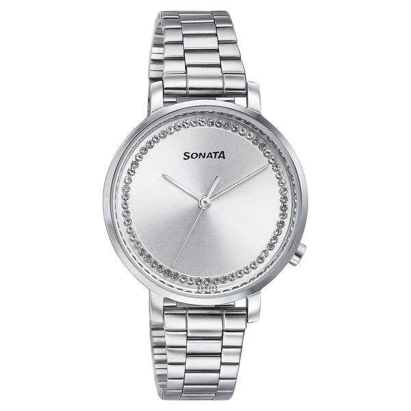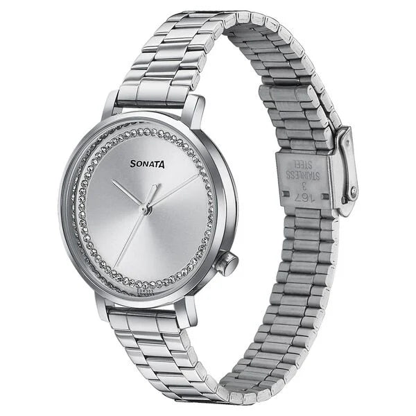 Sonata Elegent Essentials Quartz Analog Silver Dial Stainless Steel Strap Watch For Women 87045sm03w
