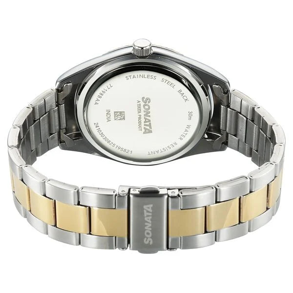 Elevate your style with the Sonata 77198BM01 Festive 2.0 Analog Watch for Men. This sleek timepiece combines functionality and fashion, featuring a classic analog display with a festive touch. The stainless steel case and bracelet provide durability, while the water-resistant design ensures reliability. Whether you're dressing up for a special occasion or simply want to add a touch of sophistication to your everyday look, this watch is the perfect accessory. Stay on time and on trend with the Sonata Festive 2.0 Analog Watch for Men.