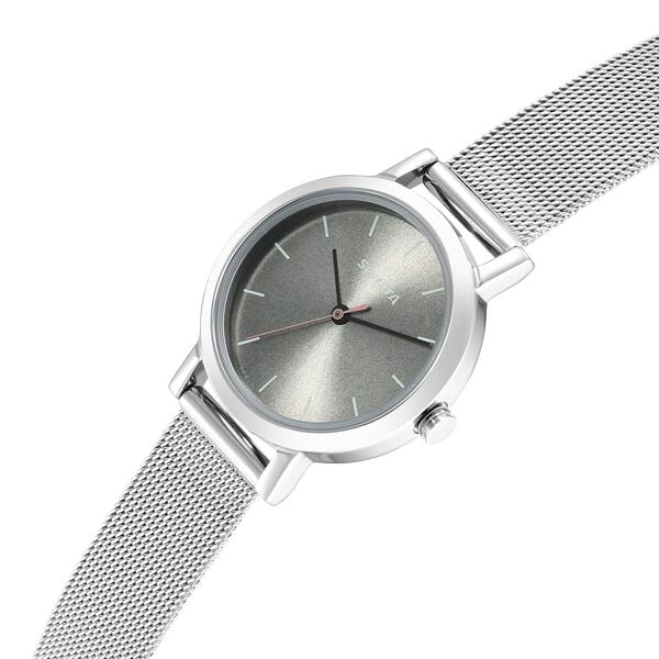 Get a charming look by sporting this women's analog watch from the Sonata. Its round-shaped Grey-toned dial is protected in a case of 31 mm diameter. It bears plain 3-hand functionality to keep you on time. The PU strap of this watch exudes a purple hue for an eye-catching look. Its buckle clasp ensures a secured grip around the wrist.