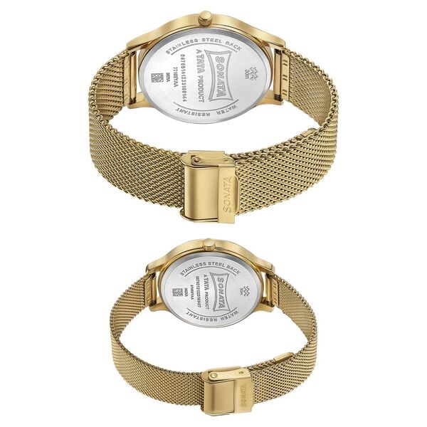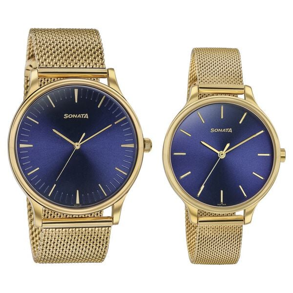 Sonata Modern Bandhan Quartz Analog Blue Dial Stainless Steel Strap Watch for Couple 7710587050ym03