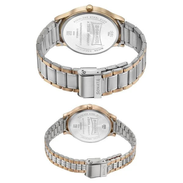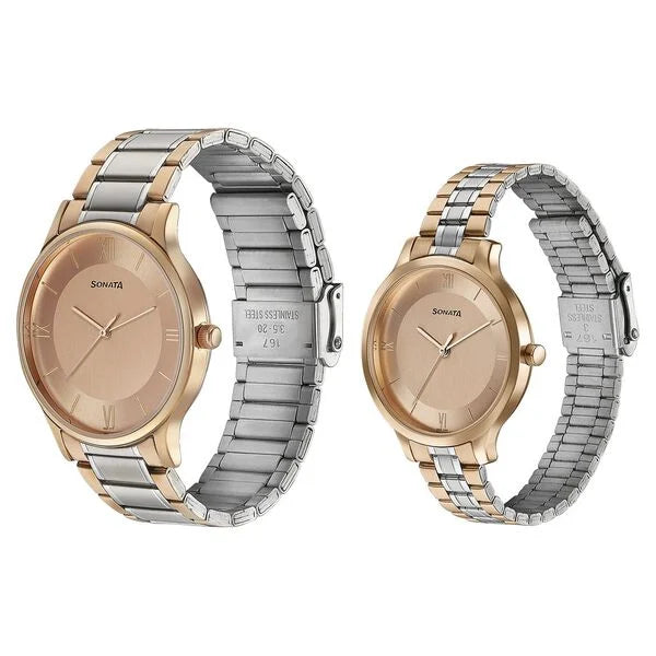 Sonata Modern Bandhan Quartz Analog Pink Dial Stainless Steel Strap Watch for Couple 7710587050km02